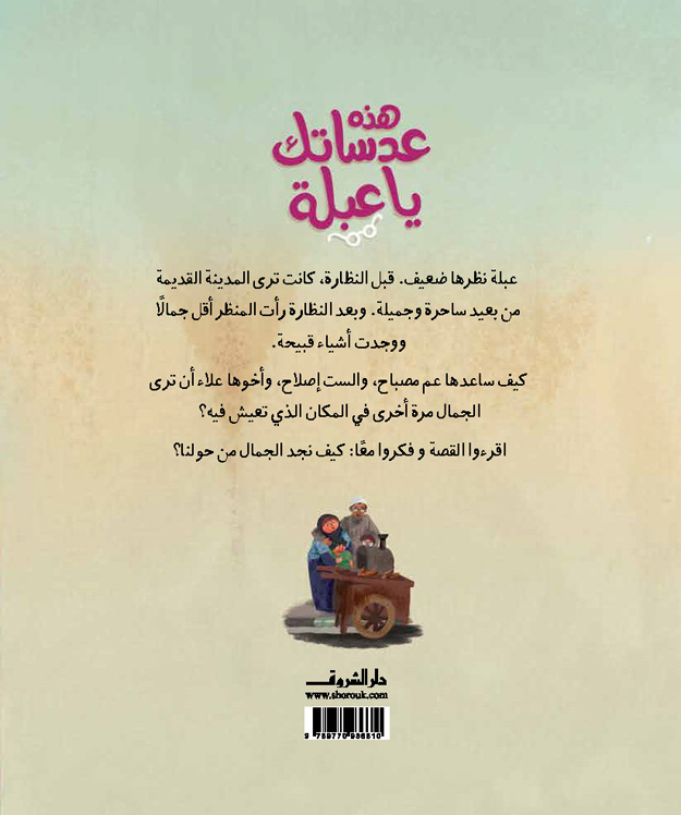 Abla has weak eyesight. Before she got her glasses, she saw the old city from afar as magical and beautiful, but after wearing them she found the view less beautiful and noticed ugly things she had never seen before. How did Uncle Misbah, Lady Islah, and her brother Alaa help her see beauty once again in the place where she lives? Read the story and think together: how do we find beauty around us even when it is not obvious to the naked eye?