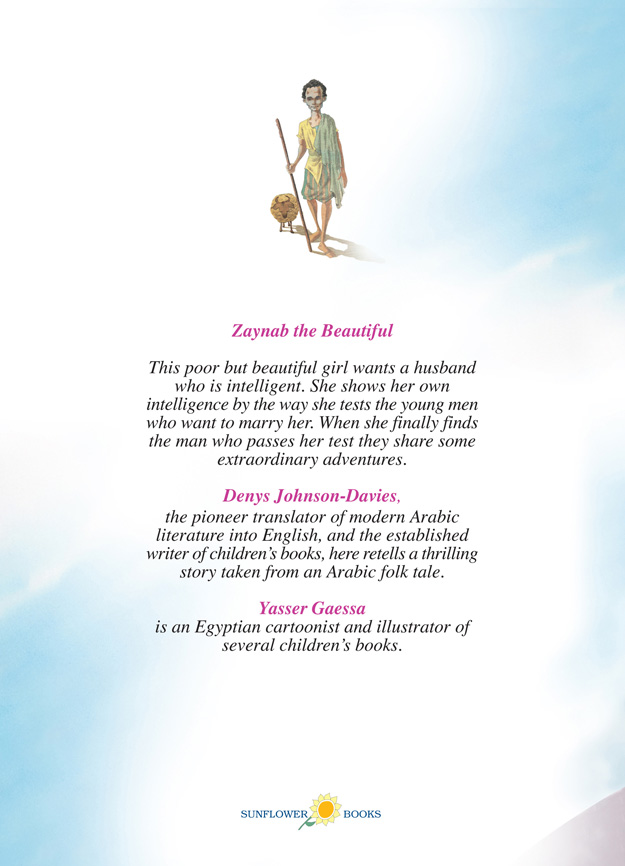 This poor but beautiful girl wants a husband who is intelligent. She shows her own intelligence by the way she tests the young men who want to marry her. When she finally finds the man who passes her test, they share some extraordinary adventures. Sunflower Books serves to relay cultural and historical anecdotes from the Arab world, in an intriguing manner and elegant style. Dar El Shorouk takes pride in collaborating with an icon of Modern Arabic culture, Mr. Denys Johnson-Davies in publishing this unique series for young readers.