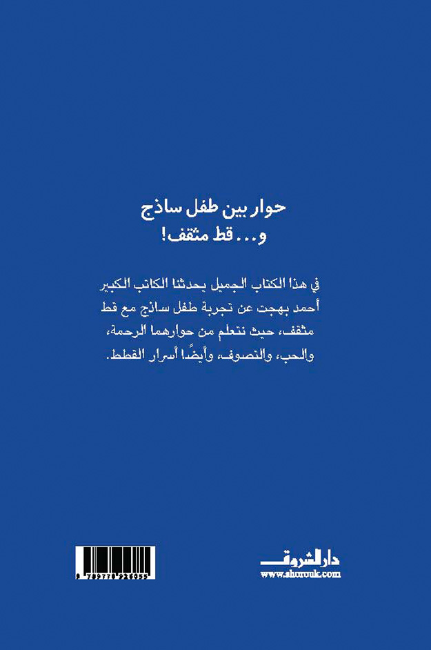 In this gentle book, the great writer Ahmed Bahgat tells us about the experience of a naive ten-year-old boy with an educated cat, and through their dialogue we learn compassion, love, and the secrets of cats. This story takes us to faraway worlds, then returns to plunge us into the depths of our own inner worlds, while the cat helps us understand the world and ourselves.