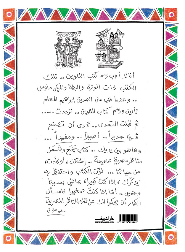 ما إن ظهر هذا الكتابُ حتى وقع في غرامه الكبار والصغار على حد سواء، وهو أول كتاب في سلسلة "كان زمان" التي تدعو الأسرة كلها للتلوين واللعب والتأمل في التفاصيل واستعادة الذكريات. كل صفحة من هذا الكتاب هي لوحة بديعة للفنان حلمي التوني، تمثل العادات والتقاليد والأشياء المصرية الأصيلة. يقول حلمي التوني إنه رغم عدم حُبه لكتب التلوين، إلا أنه قَبِل التحدي ليصنع شيئًا جديدًا أصيلا ومفيدًا؛ فكان هذا الكتاب الذي جمع مناظر مصرية صميمة اختفت، أو كادت، من حياتنا. لوّن الكتاب واحتفظْ به ليُذكّرك، إذا كنت كبيرًا، بماضٍ بسيط ومُبهج. أما إذا كنت صغيرًا، فاسأل الكبار أن يحكوا لك عن هذه المناظر المصرية.