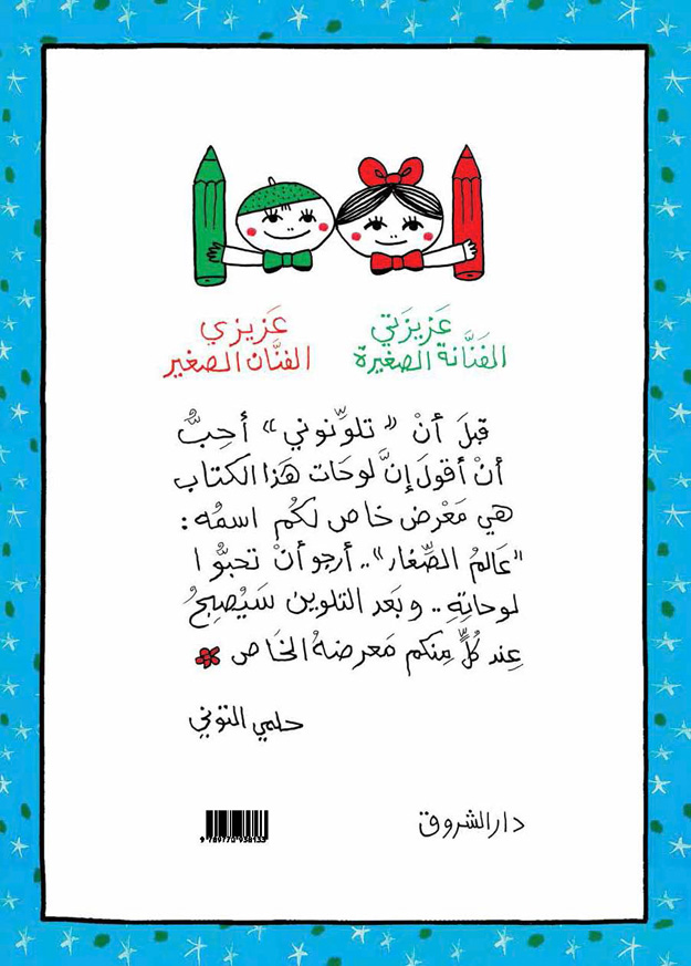 لوحات هذا الكتاب هدية من الفنان حلمي التوني لكل فنان صغير وفنانة صغيرة، فاللوحات الموجودة به هي في الأصل لوحات من معرض اسمه "عالم الصغار". نتمنى أن يحب الأطفال (والكبار) هذه اللوحات، وبعد تلوينها سيكون عند كل منهم معرضه أو معرضها الخاص.